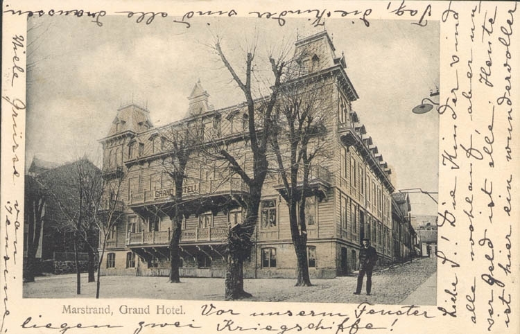 Tryckt text på kortet: "Marstrand. Grand Hotel."