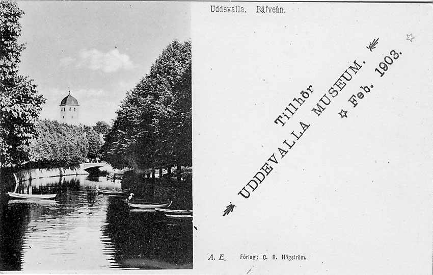 Tryckt text på vykortets framsida: "Uddevalla Bäfveån".