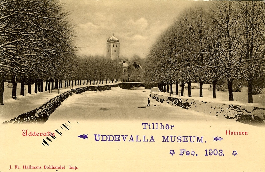 Titel: Tryckt text på vykortets framsida: "Uddevalla Hamnen".
