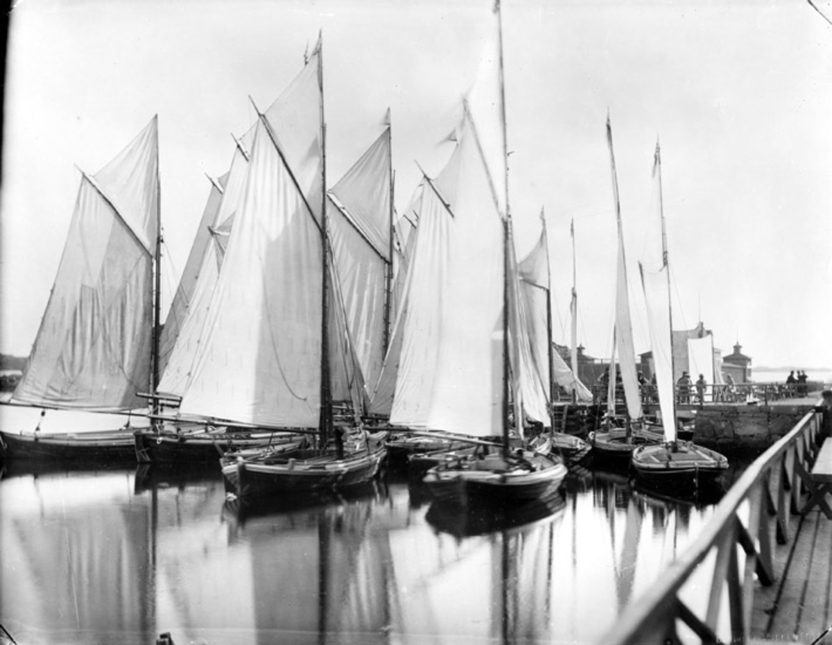 Skrivet på baksidan: Kosterbåtar för badgästsegling i Lysekil början på 1900-talet
