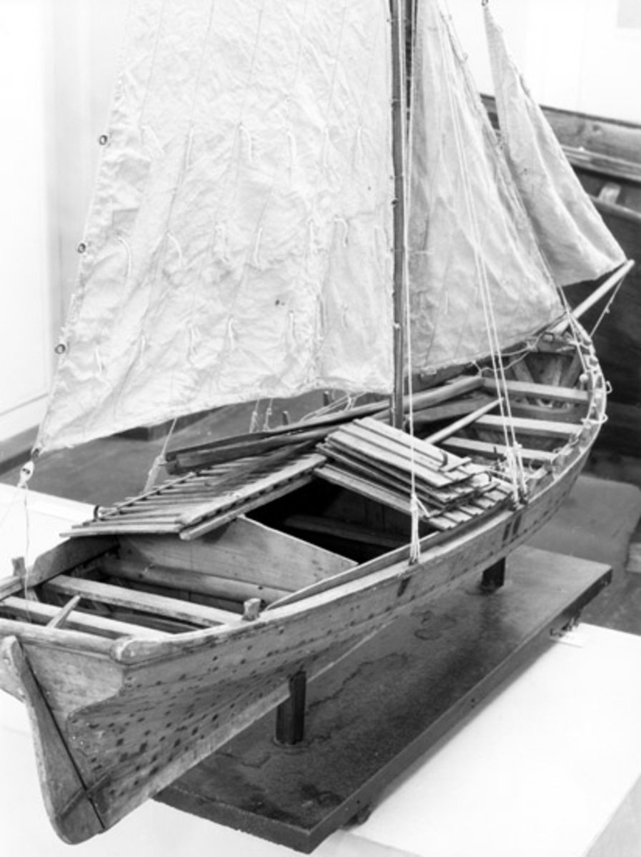 Skrivet på baksidan: Nordlandsmuseet, Bodö Hardangermot-båt, detalj