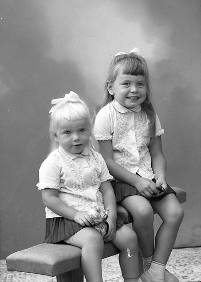 Enligt fotografens journal: "Karin o Lena Johansson, Rödklövervägen 6 Stenungsund".