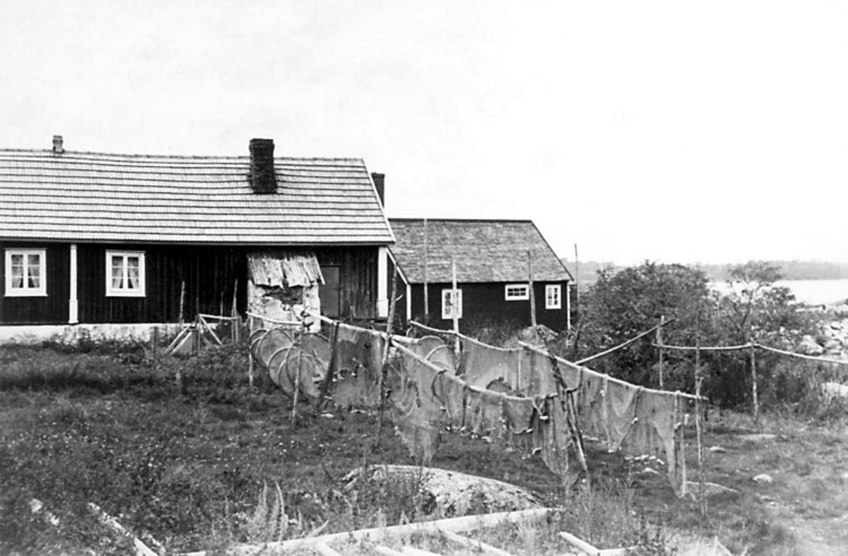 Skrivet på baksidan: Blekinge, Listers hd, Mjällby sn, Hörvik. "Ålahommor" med två armar.