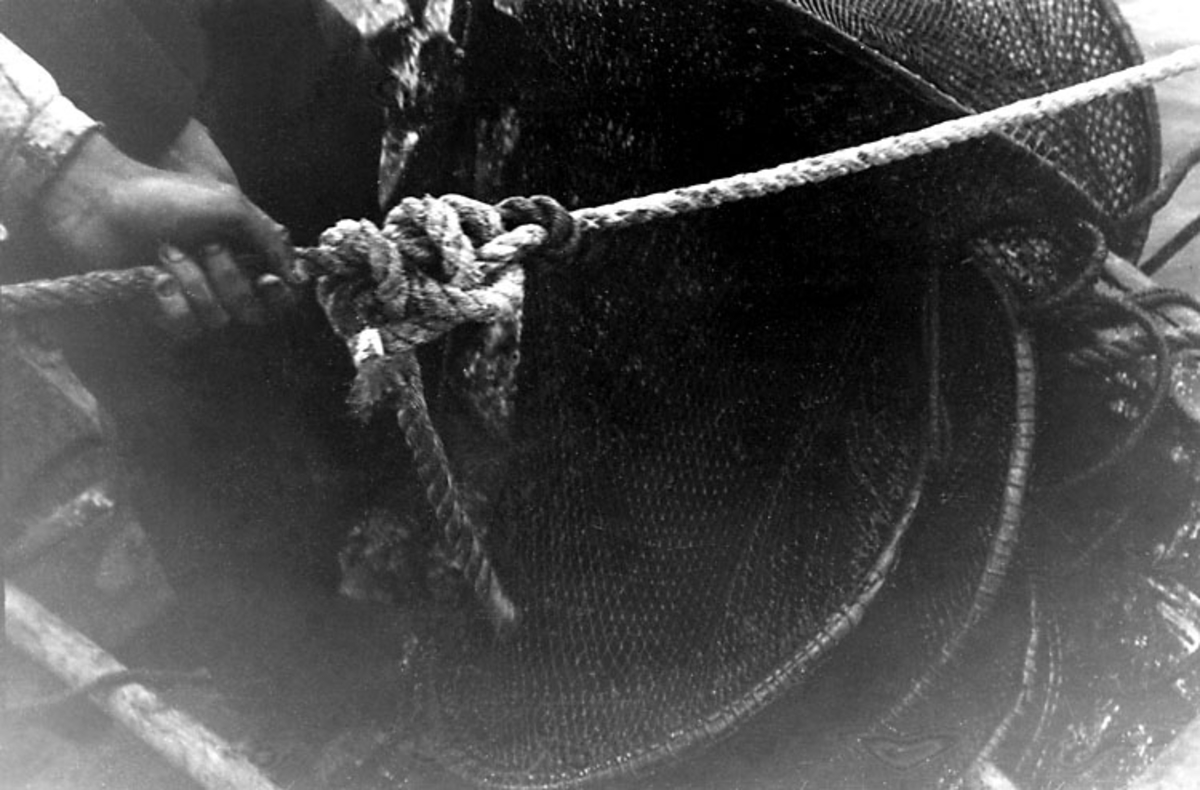 Skrivet på baksidan: Blekinge, Listers hd, Mjällby sn, Hörvik. Bottengarn. Nästan hela ryssjan ligger i ekan.