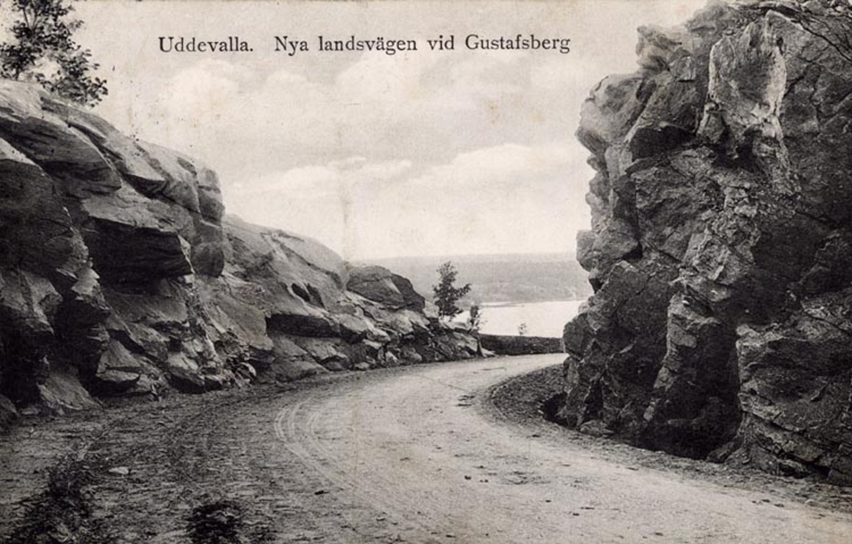 Tryckt på kortet: "Uddevalla. Nya landsvägen vid Gustafsberg."