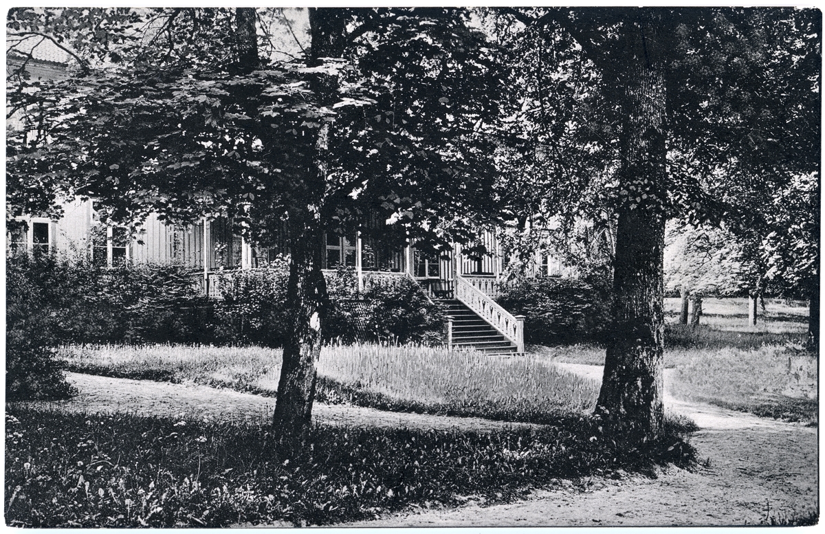 Tryckt text på vykortets baksida: "Uddevalla. Gustafsberg Societetshuset."