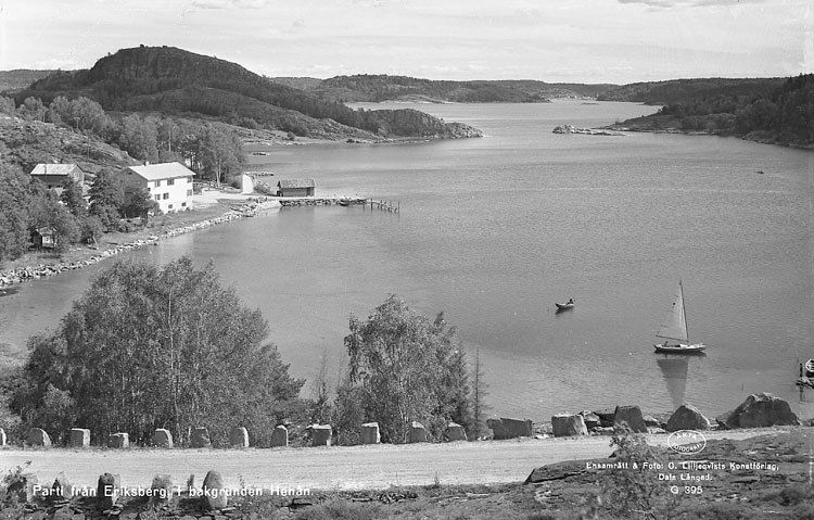 Enligt AB Flygtrafik Bengtsfors: "Eriksberg fr. berget utåt sjön Bohuslän".