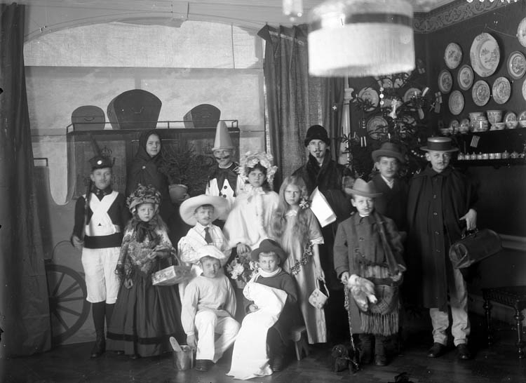 Enligt tidigare noteringar: "Gruppfoto, barnkalas med kostymering i hemmiljö."