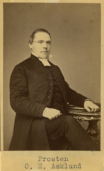 Text på kortets baksida: "O. E. Asklund. Prost, kyrkoherde i Skepplanda. F. 1883 d. 1903".