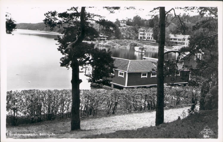 Tryckt text på kortet: "Strandpromenaden. Stillingsön."