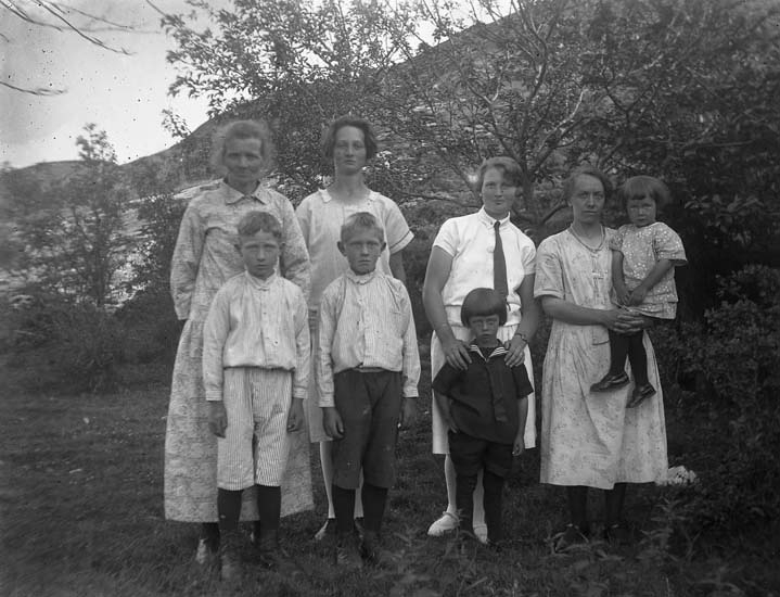 Enligt notering: "Fyra kvinnor, fyra barn, Gerda Olsson, Rut, Dagmar, Sven + 4 okända".