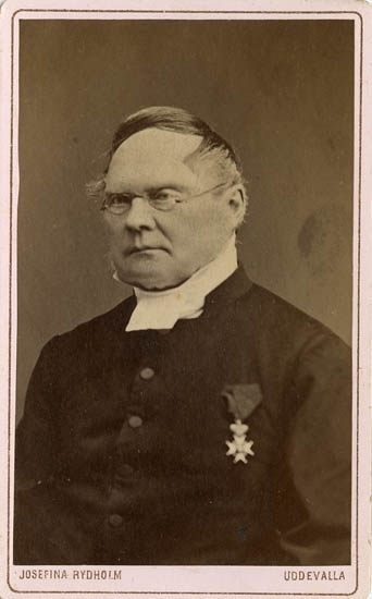 Text på kortets baksida: "Prosten Gustaf Theodor Ljunggren, Uddevalla. F 1812 d. 1900".