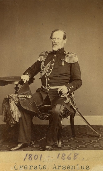 "Överstelöjtnant Georg Arsenius. Bohusläns regemente. Född 1801 Död 1868". (Text på kortets baksida.)