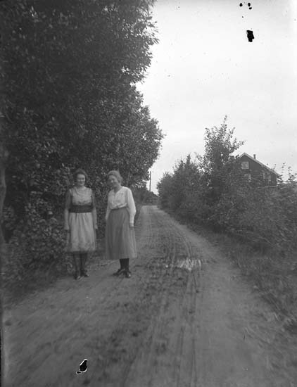 Enligt notering: "Två kvinnor på en väg, Hjälped...mejeri".