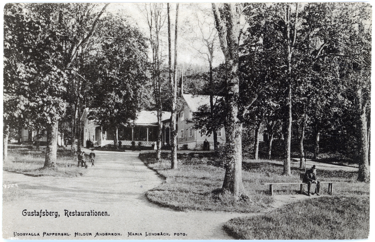 Tryckt text på vykortets framsida: "Gustafberg Restaurationen."