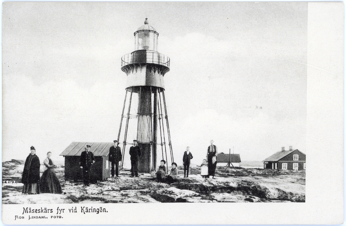 Tryckt text på kortet: "Måseskärs fyr vid Käringön".