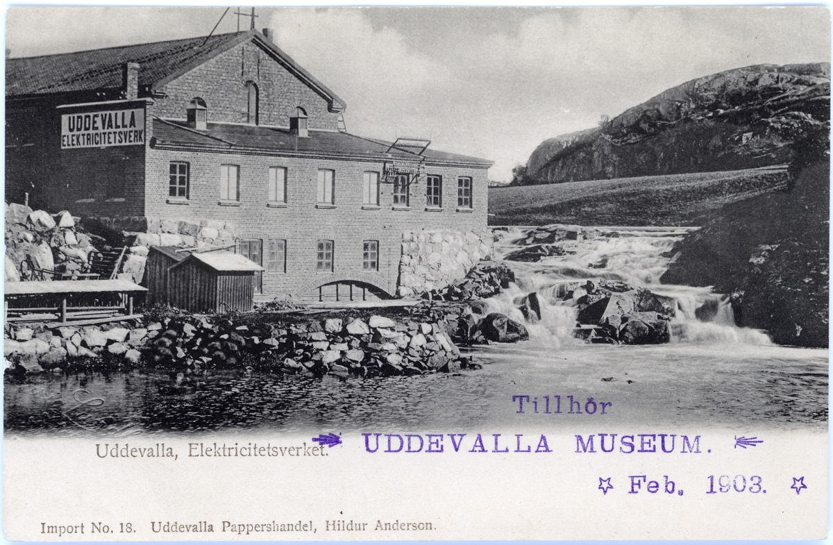 Tryckt text på vykortets framsida: "Elektricitetsverket Uddevalla".
