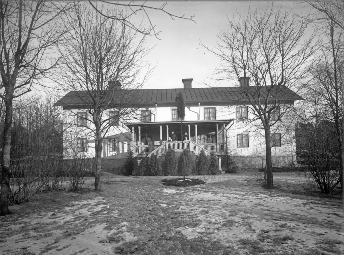 Familj på veranda, Grans gård, Yttergrans socken, Uppland, vy från väster