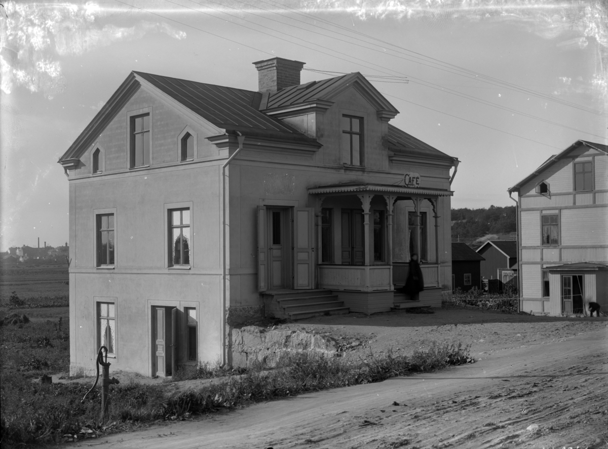 Fannagatan 33, Enköping, vy från öster, troligen 5 oktober 1904. Första fastighetsägare Martina Dahlberg (1867-1918) med kafé 1901-1903. Därefter liknande verksamheter under olika innehavare - fr.o.m. 1936 A. L. Wilkesson (1896-1954).