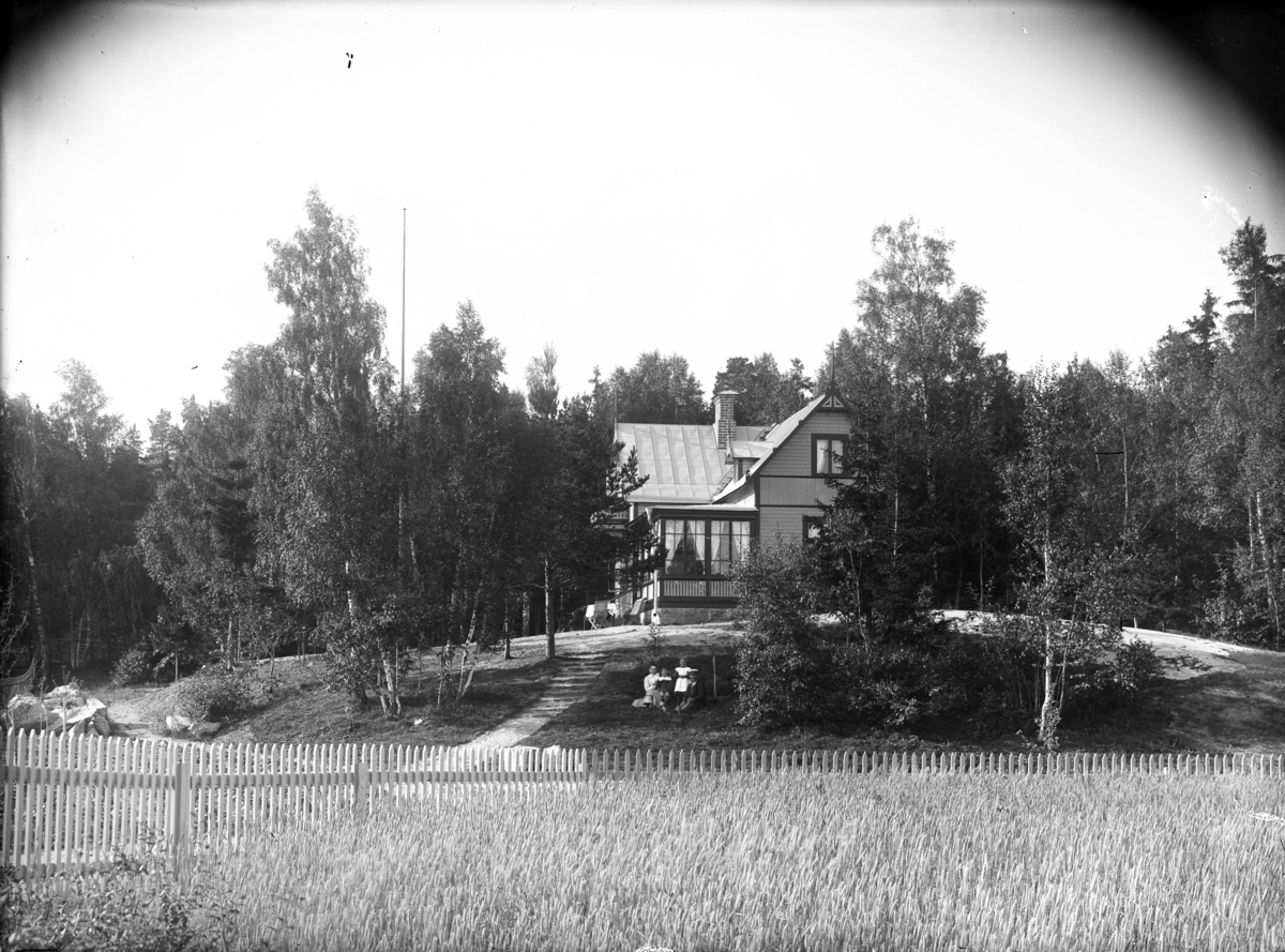 Handlare Johan Robert Bardh (1863-1914) med familj vid sommarvilla, Kotte, Trogsta, Enköpings-Näs socken, Uppland, omkring 1905