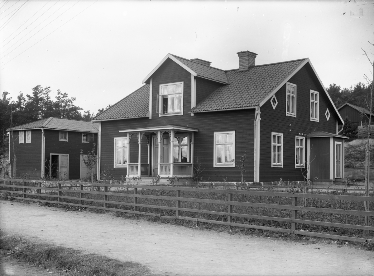 Stockholmsvägen 16 (numera 32 A), Enköping, vy från öster. Ägdes och uppfördes av byggmästare L. P. Sten, troligen 1907. Familjen bodde där själva från 1922.
