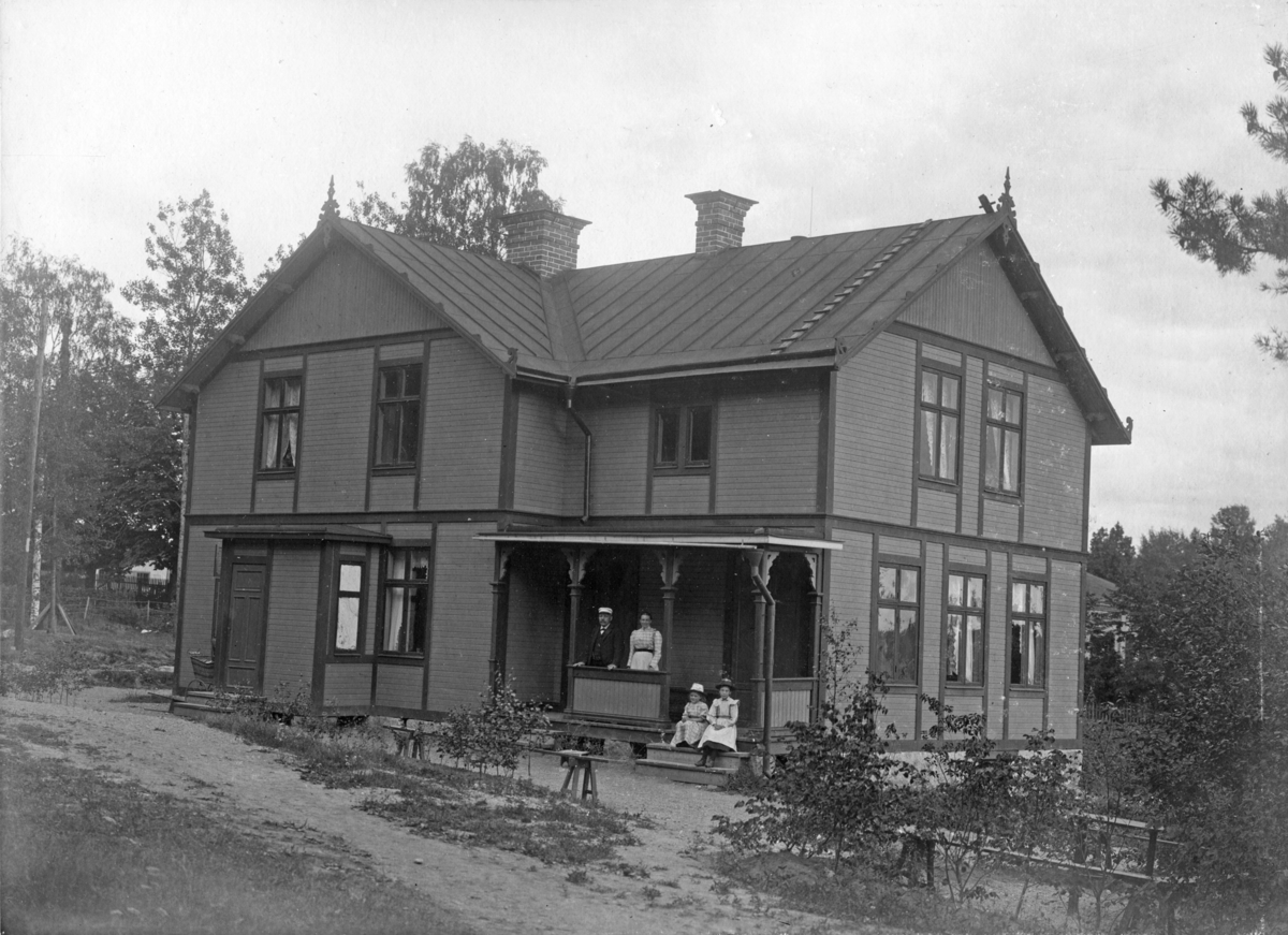 Sannolikt Fannagatan 4, Södra Området No. 34 A, Enköping, sett från väster. Ägare av fastigheten under många år var verkmästaren vid Enköpings Mekaniska Verkstad; Karl Vilhelm Kling (1856-1932) med familj.