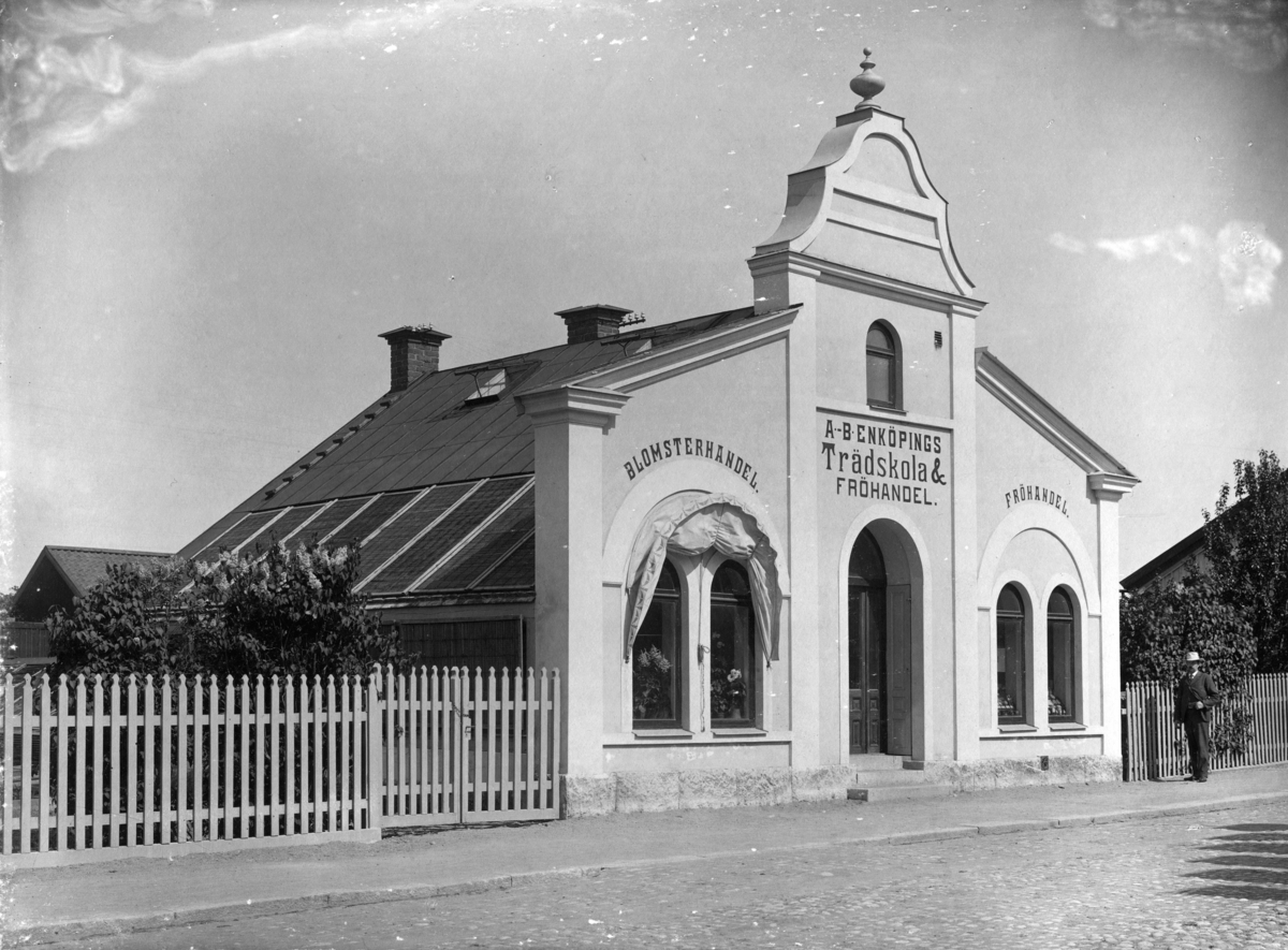 "A.-B. Enköpings Trädskola & Fröhandel", Kyrkogatan 36, Enköping, sett från söder. (Se även bild EMFWA00081).