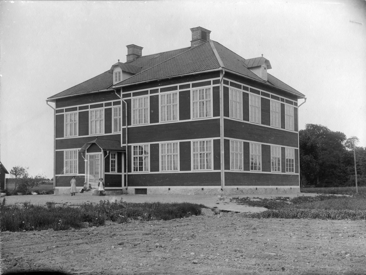 Titel: "Kyrkskolan", Tillinge socken, Uppland, sett från sydväst, ca 1915 (enligt bild EMFWA00184)