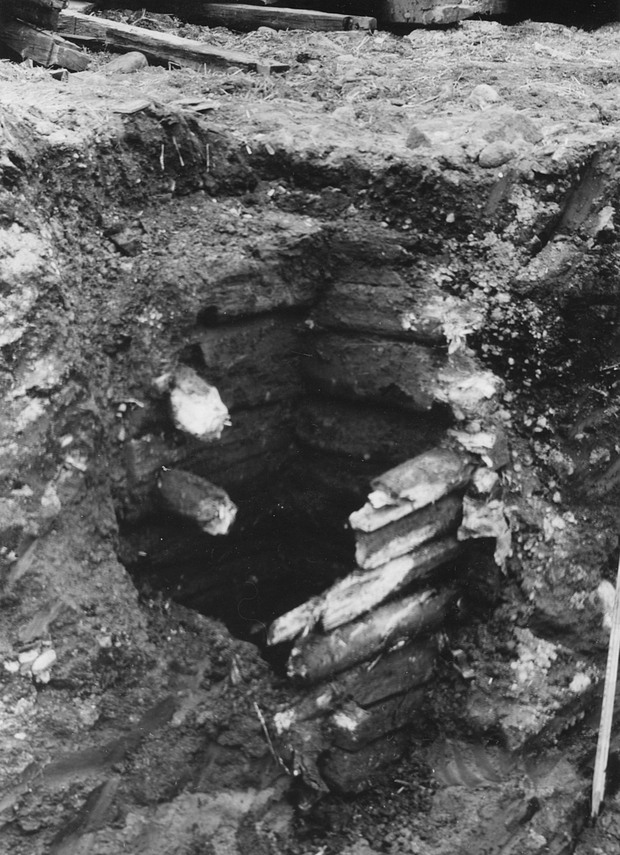 Enköping, kvarteret Apotekaren nr 8, timrad gårdsbrunn från medeltiden
