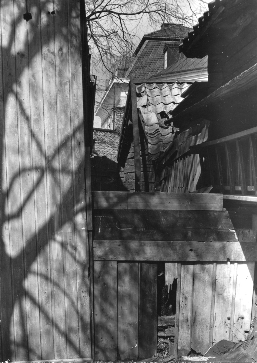 Enköping, kvarteret Kaplanen nr 12, brandgata sedd mot dåvarande nämndhuset