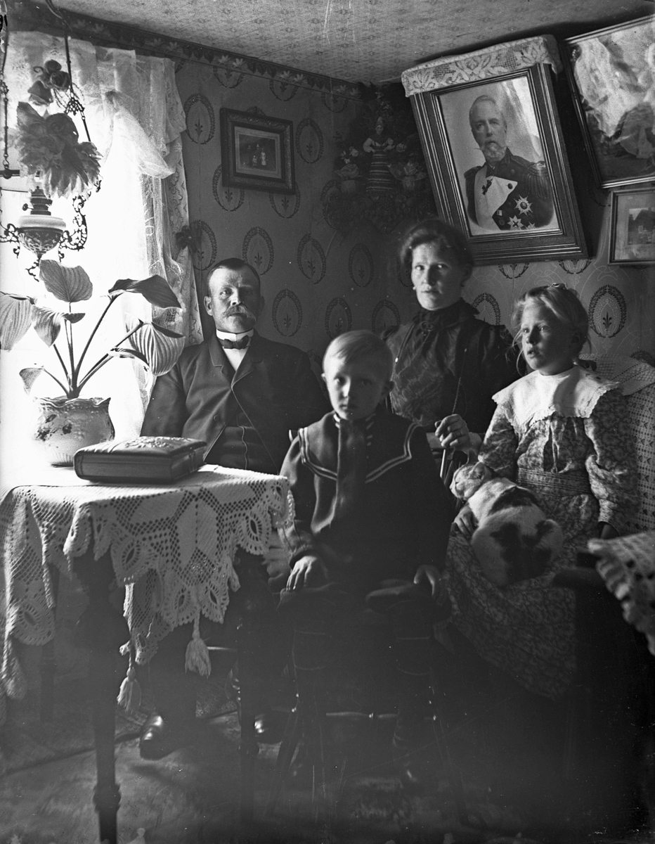 "Grupp i rum, Ekborgs kammare", ev. Hamby, Bred socken, Uppland, 30 maj 1909