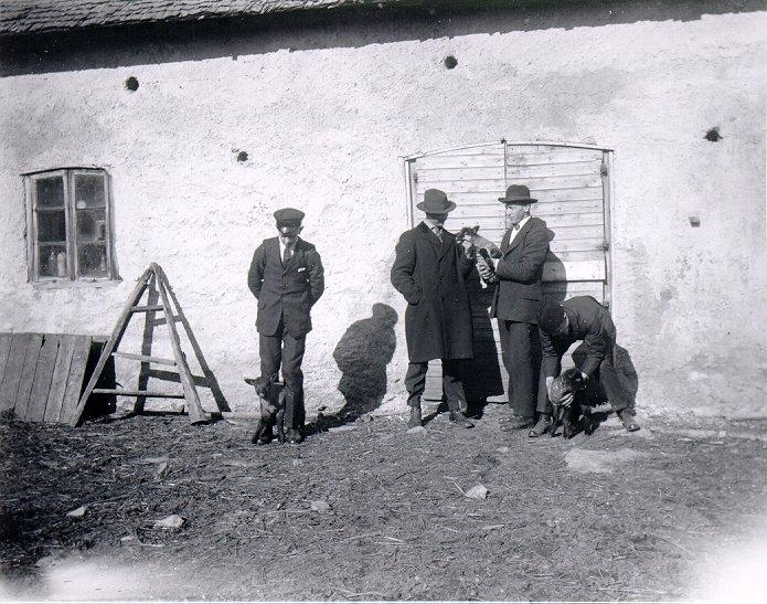 Lamm i vårsolen utanför gamla ladugården i Öja.