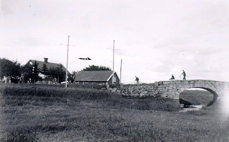 Gamla bron över Ätran. Husen tillhörde Skräddare Ljunggren.