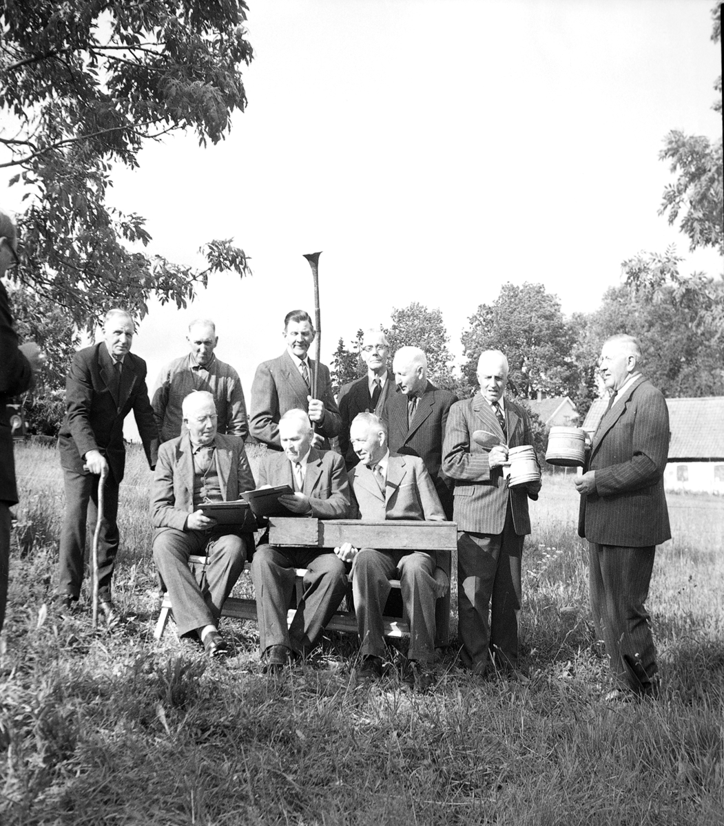Titel: Jättene by, Byalaget 1961 bl.a näverlursblåsarna.