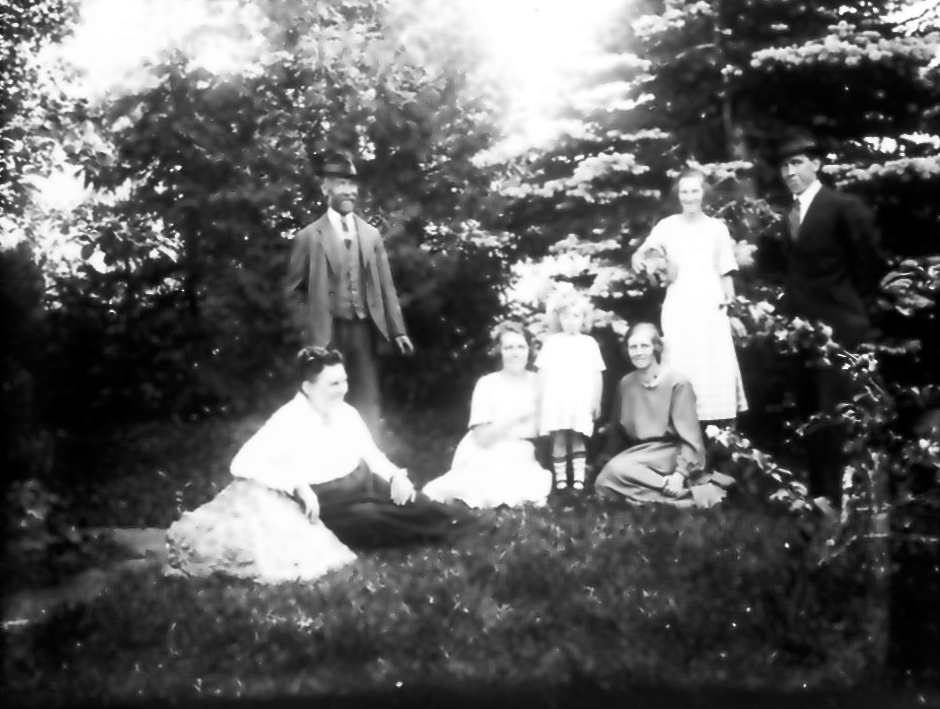 Alphems arboretum. T.v. står grundaren Frans Johan Gegerfelt och framför honom hustrun Amanda. Övriga är barn och barnbarn.