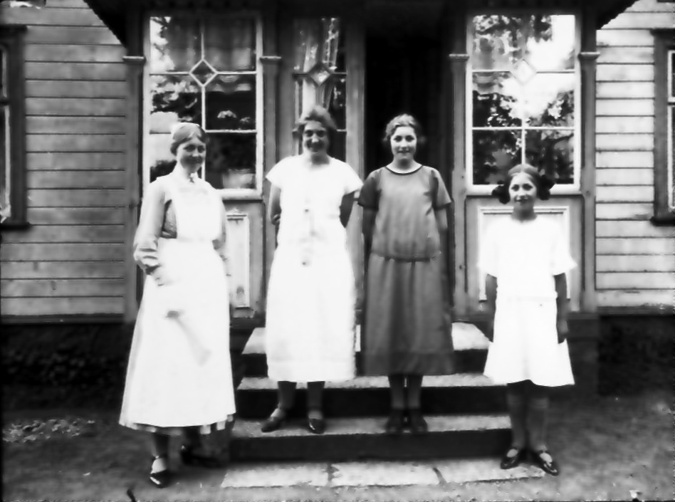 Albert Johanssons döttrar i Trädgården (Storgatan 25): Karin f 1902, Anna f 1904, SIgne f 1907, Gunhild f 1912.