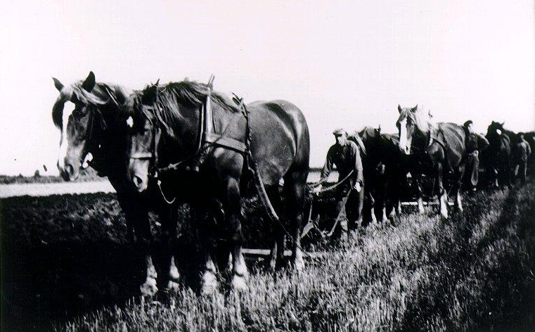Risholmen, Luttra. Plöjningsarbete Risholmen.