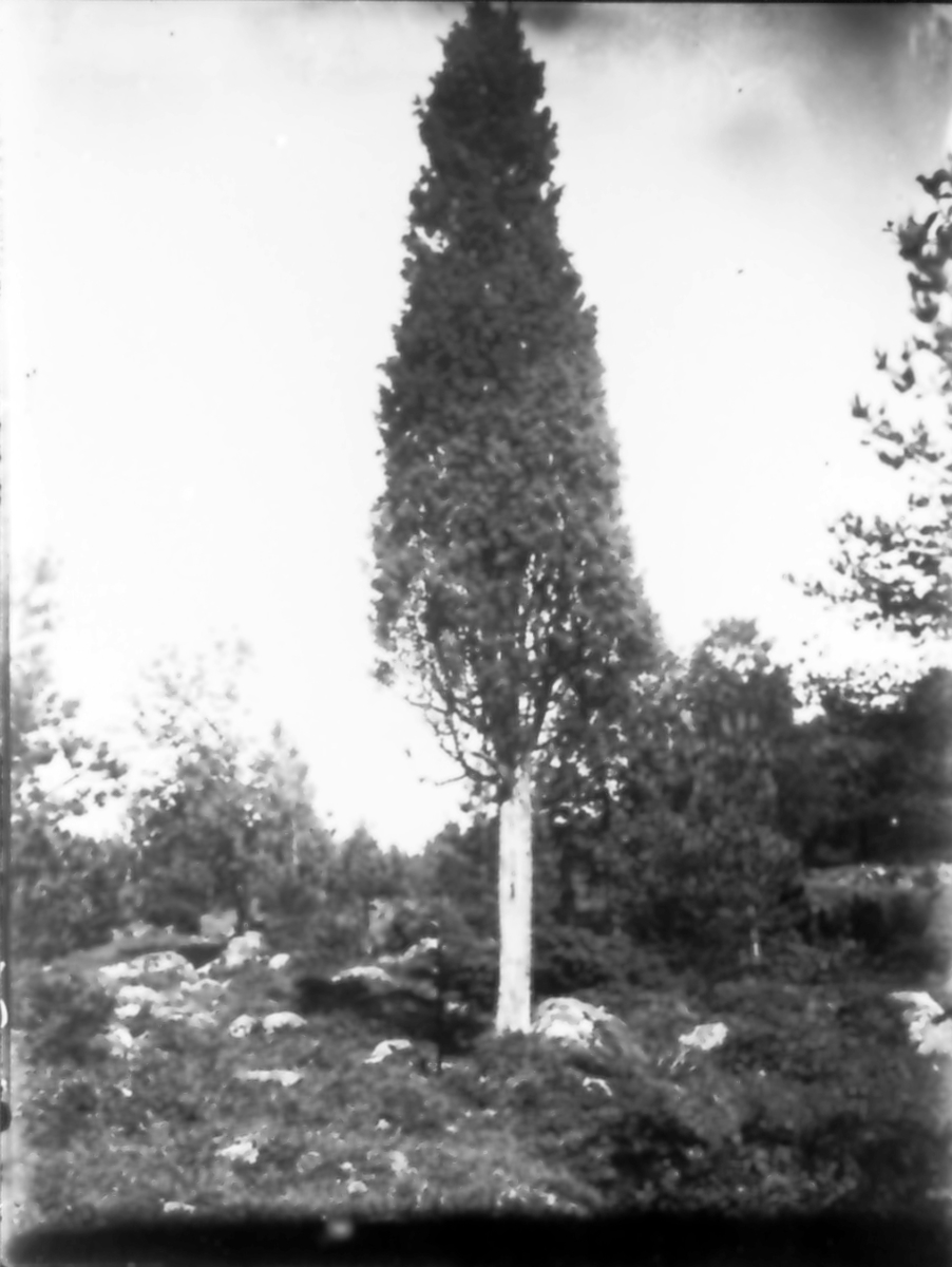 Stor enbuske, fotografen har satt sin käpp bredvid för skalan.