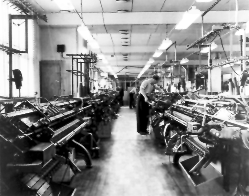 "Stickmaskinssal" (Ottossons textilfabrik). Från utställningen "Falköping i bild" 1952.