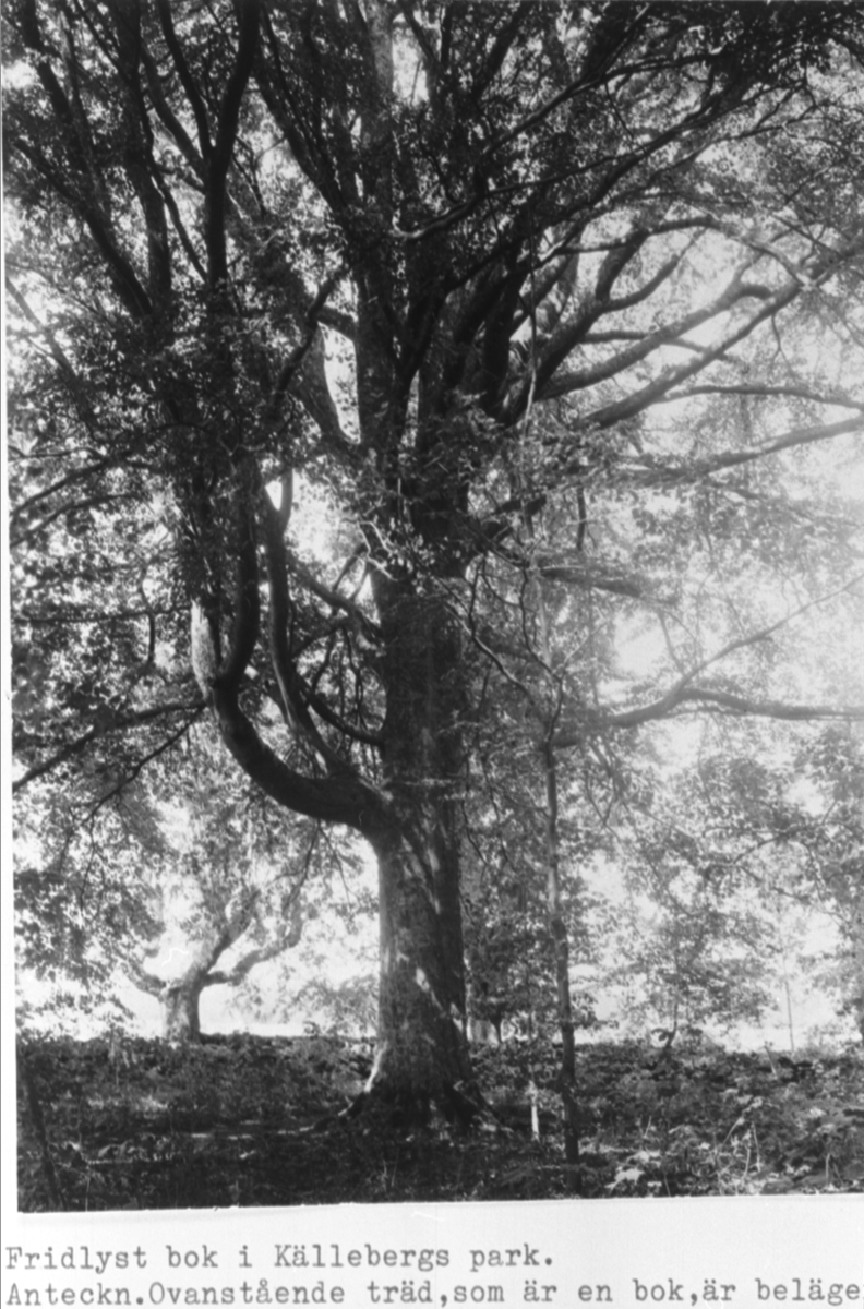 Fridlyst bok i Källebergs park. Boken är belägen i den vackra parken på Källebergs egendom i Mularps socken. Godsägare Axel Gustafsson har skänkt den till Åsle-Mularps och Tiarps Hembygdsförening såsom naturminnesmärke. Boken ifråga är en fot från marken i omkrets 5,45 m. och vid brösthöjd 4,15 m. Kronans diameter är c:a 30 m. och dess höjd c:a 35 m.