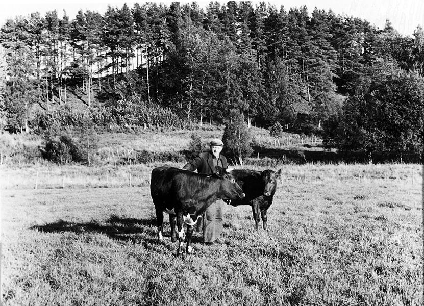 Smeden Fogelqvist med ungdjur i betesmarken.