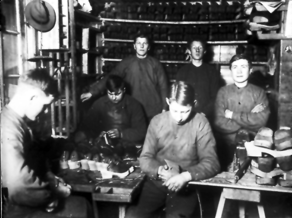 Floby Trätoffelfabrik som startade omkr. 1924. ERik Malm, Erik Nord, Olof Olofsson "Toffel-Olle", Erik Lundin i Österås, Gunnar Petterson och Rudolf Ekstrand.