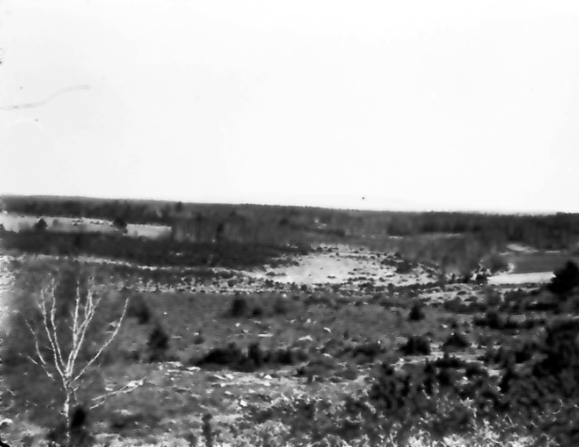 Från "Lellinges backar". Längst t.v. en markladugård "Mose hötta".