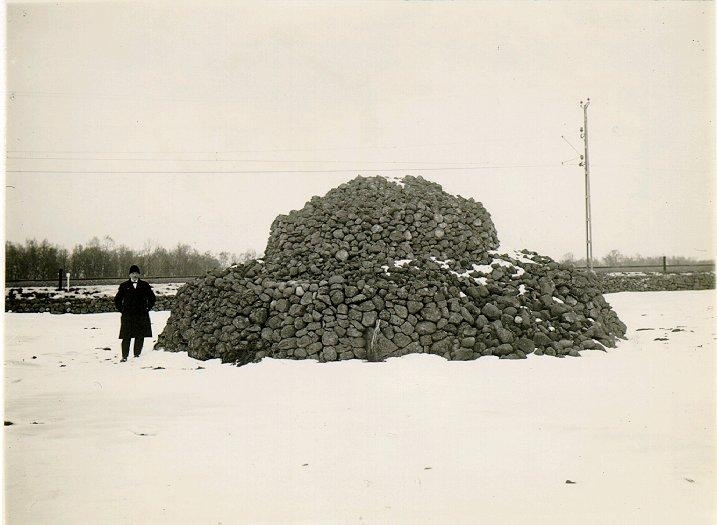 Stort upplagt odlingsrör intill järnvägen, tas av många för en fornlämning.