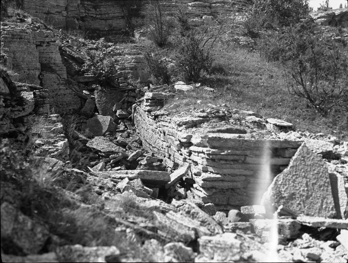 Gammal kalksättning (ugn eller bostad) vid erosionsdalen vid Dala kalkbruk.