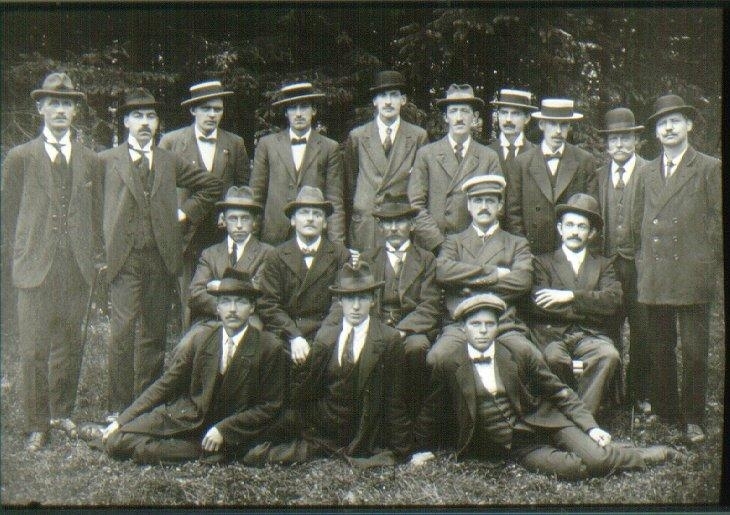 Stående från vänster överst: Nils Jansson, Ström, Karl Fridolf, John Jonsson (fotbollsspelare), Ernst Spångberg, Erik Karlsson, Heij, Emil Hellström. Mellanraden: Ivar Hedberg, Ville Eriksson, Karl Berg, Ossian Lundström, Sylva. Nedre raden: ? John Krämer: ?