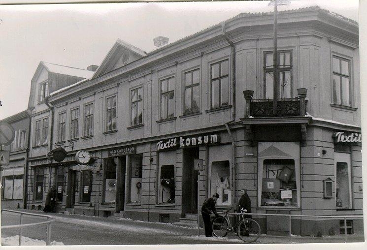 Kv. Guldsmeden. Storgatan 18. Per Lars tomt. Revs 1957. Den "Janssonska" fastigheten före rivningen 1957.
