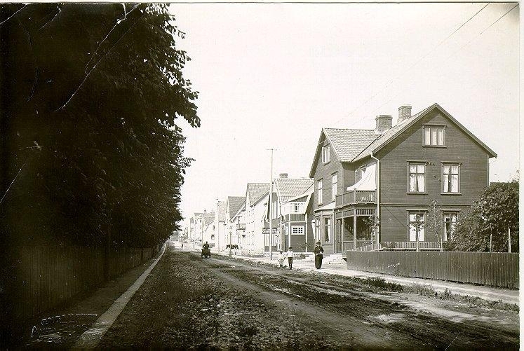 Kv. Glasmästaren, Dotorpsgatan 8-12. Tomt innanför staketet är dir. Rhemarks. (tidigare C.H. Gustafssons), Larsons glasmästeri och skräddare Söderströms.