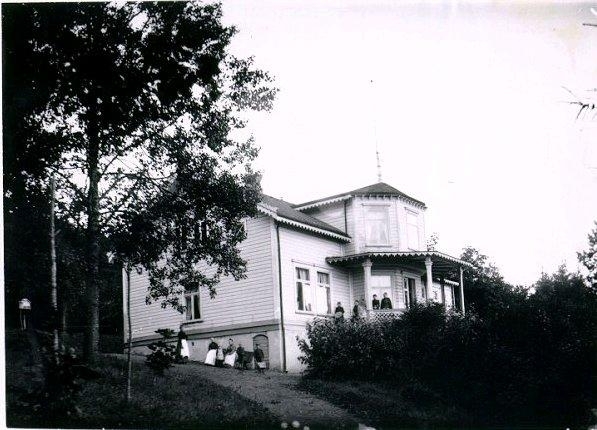 Villa Fridhem. Foto från söder (Danska vägen) antagligen från omkring 1910. Var tidigare en gård med stort lantbruk. Detta är frånsålt och byggnaden ingick sedan i sjukhusområdet med bostad för överläkare vid sjukhuset. Ägare vid sekelskiftet var handl. Johansson och Plith, varvid Karl Plith hade nedre våningen och Johansson den övre. Nu borta.