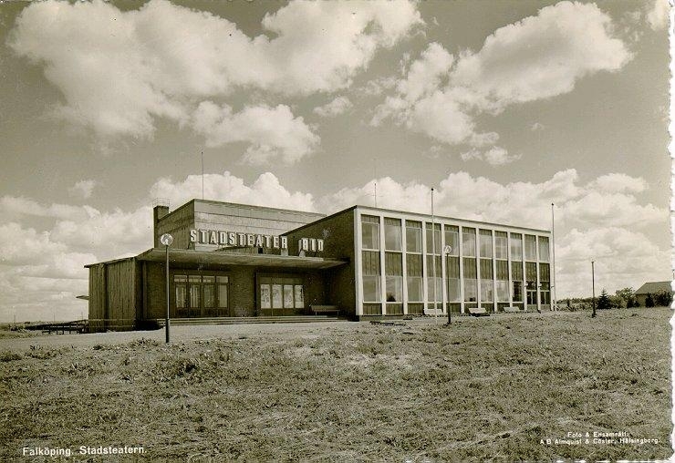 Stadsteatern, framsidan och interiör inifrån teatern mot scenen. Endast första delen byggd.